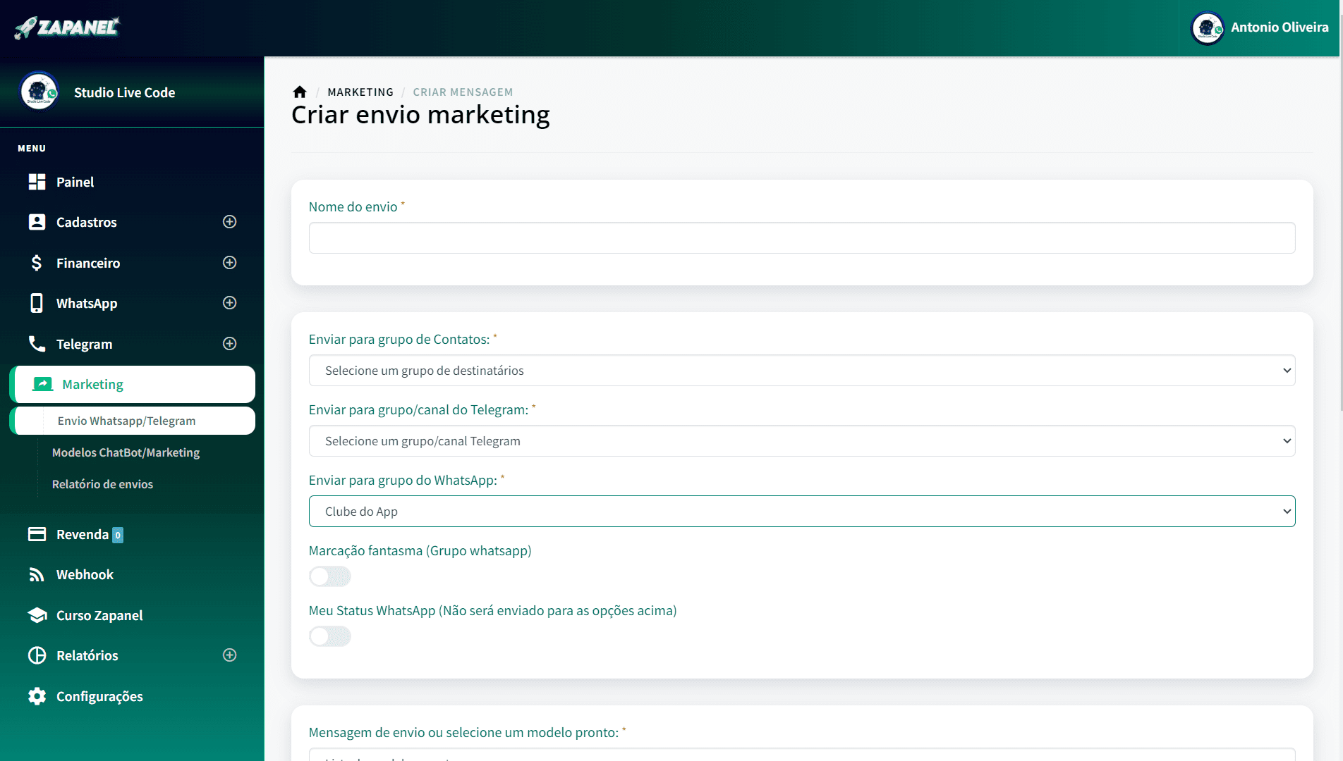 Potencialize suas campanhas com nosso Agendamento de Marketing Recorrente para WhatsApp e Telegram. Agora, com marcação de usuários em grupos e postagens de status no WhatsApp. Automatize suas estratégias e alcance resultados excepcionais!